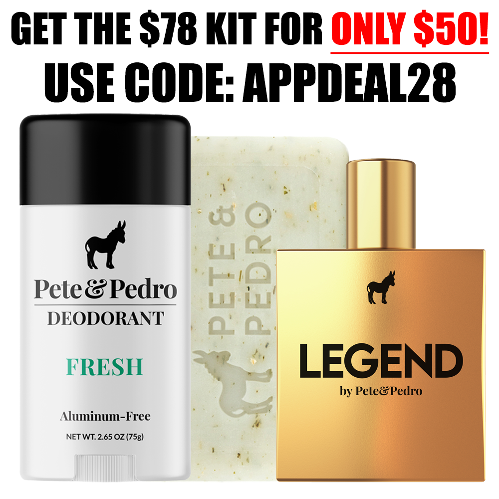 The kit includes our long-lasting Natural Fresh Deodorant, our ridiculously hydrating and exfoliating Fresh Body Bar, and your choice of ANY 1 cologne (REBEL, LEGEND, or ICON) from The House Of Pedro!