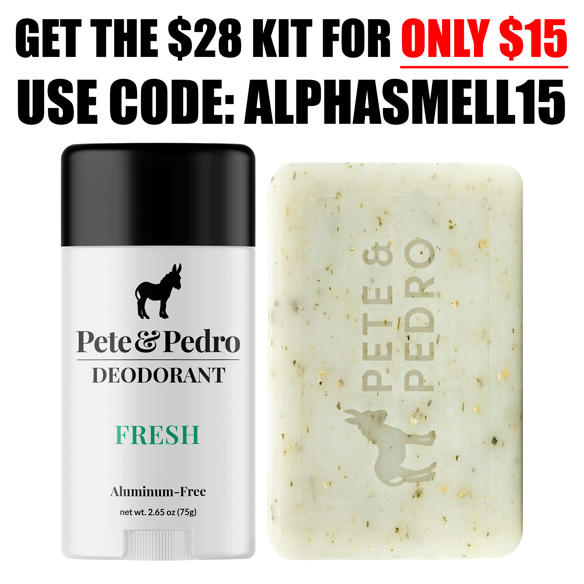 THE DEAL: Grab a FRESH Natural Deodorant + a FRESH Body Bar for only $15 - retails normally for $28! That's a $13 deal - nearly 50%, gents! Just add the kit to bag and use code: ALPHASMELL15 to get the kit $13 OFF for only $15!